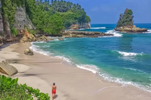 Pantai Sawarna di Banten menawarkan pesona alam eksotis, pasir putih bersih, ombak menantang, dan suasana tenang sempurna untuk liburan pantai yang memikat.