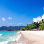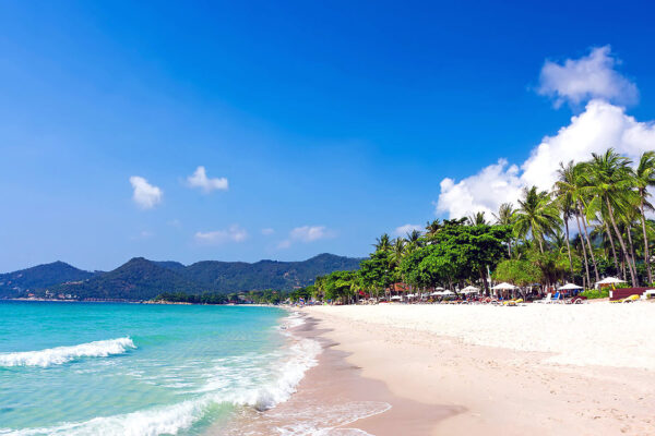 Pantai Chaweng di Koh Samui menawarkan pasir putih bersih dan air laut jernih, cocok untuk bersantai, berjemur, dan menikmati keindahan alam tropis pulau ini.