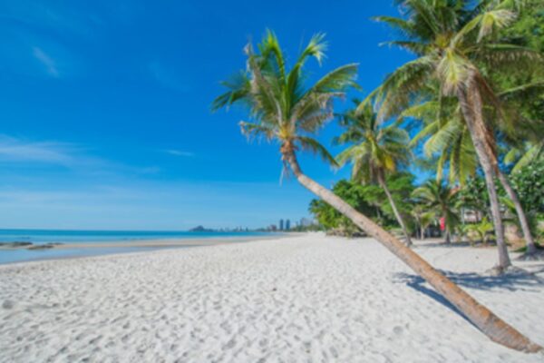 Pantai Hua Hin menawarkan pasir putih lembut, pemandangan laut yang menenangkan, dan suasana yang tenang, cocok untuk liburan santai dan menikmati keindahan alam Thailand.