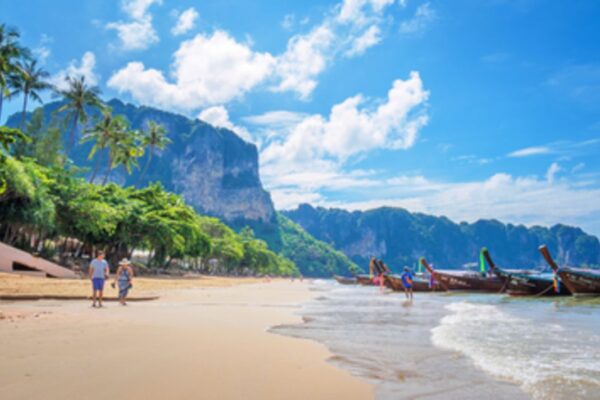 Pantai Karon di Phuket menawarkan pasir putih lembut dan air jernih, ideal untuk bersantai dan menikmati keindahan alam tropis yang menenangkan.