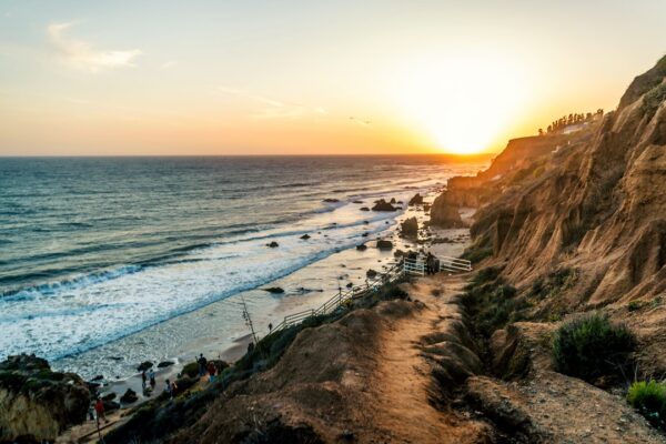 Pantai Malibu Beach di California menawarkan pemandangan indah, pasir lembut, dan suasana tenang, ideal untuk bersantai dan menikmati keindahan alam pesisir.