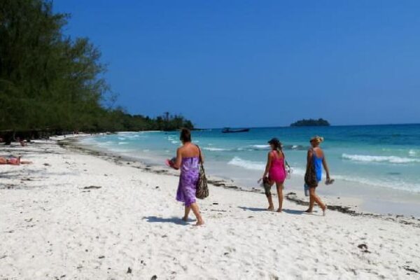 Pantai Ream Beach di Kamboja menyuguhkan keindahan alam alami, pasir putih bersih, dan air laut jernih, ideal untuk bersantai dan menikmati panorama laut yang menenangkan.