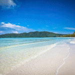 Pantai Ochheuteal di Kepulauan Koh Rong menawarkan pasir putih bersih dan air laut jernih, cocok untuk bersantai dan menikmati keindahan alam tropis Cambodia.
