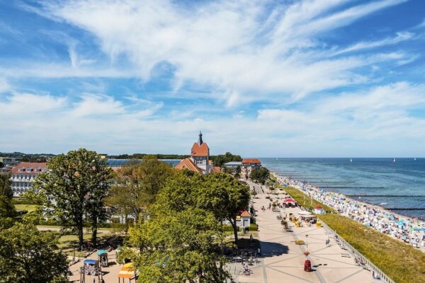 Pantai Travemünde menawarkan pesona pantai yang indah, udara segar, dan pemandangan laut yang menenangkan, ideal untuk bersantai dan menikmati keindahan alam di Jerman.
