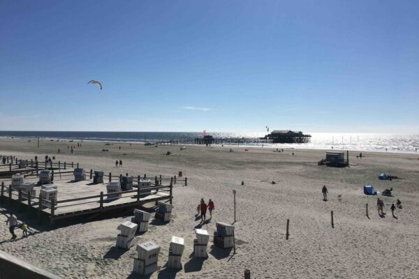 Pantai Sylt, termasuk Westerland, menawarkan pesona alam yang memikat dengan pasir putih dan laut biru, ideal untuk bersantai dan menikmati keindahan alam di Pulau Sylt.