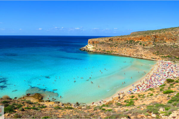 Pantai Spiaggia dei Conigli di Lampedusa adalah pantai indah dengan pasir putih dan air jernih, ideal untuk bersantai dan menikmati keindahan alam Mediterania.