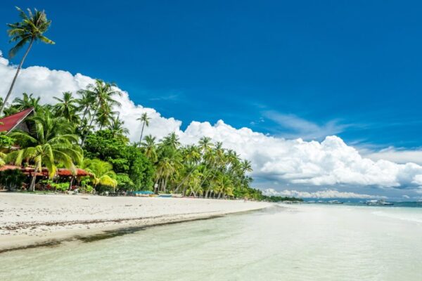 Pantai Alona di Panglao, Bohol, menawarkan pasir putih lembut dan air jernih yang ideal untuk snorkeling dan bersantai, menjadikannya destinasi wisata unggulan di Filipina.