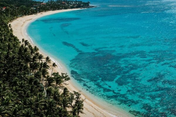 Pantai Nacpan di El Nido, Palawan, menawarkan pasir putih halus dan pemandangan alam yang memukau, ideal untuk bersantai dan menikmati keindahan alam tropis.